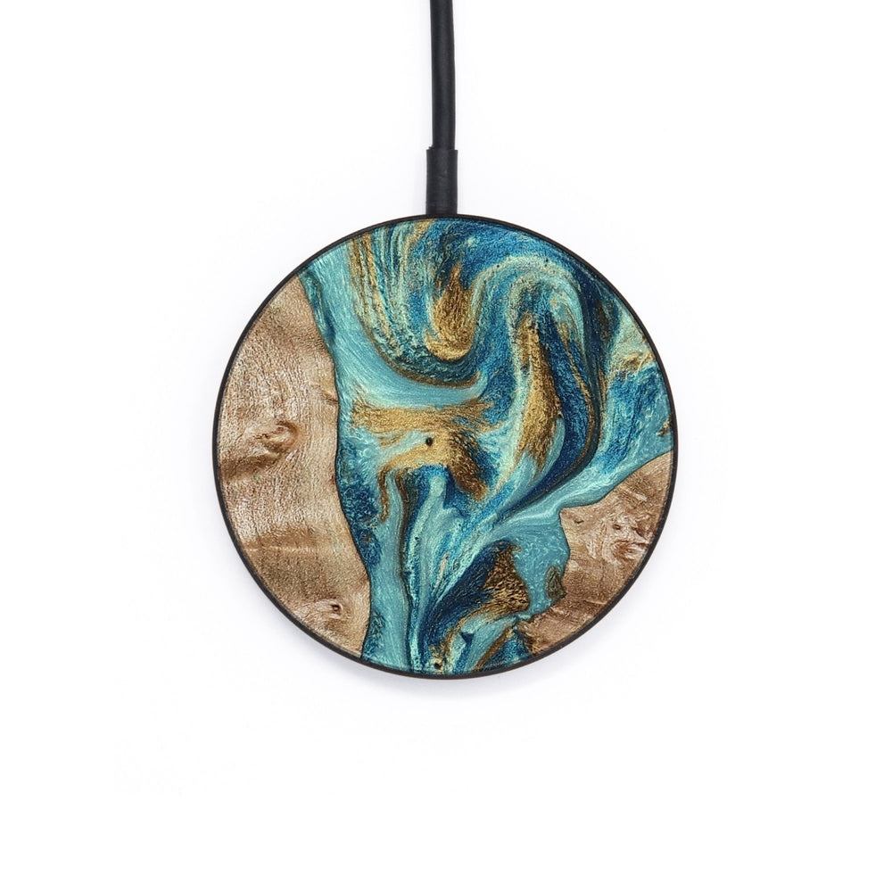 Perfectly simple, MagSafe compatible, USB-C, 1 of a kind Wireless Qi charger. CNC machined aluminum body. Every Wood+Resin inlay is unique and made at our shop in Elkhart, Indiana.