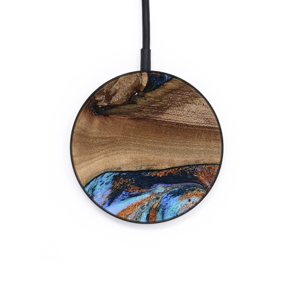 Perfectly simple, MagSafe compatible, USB-C, 1 of a kind Wireless Qi charger. CNC machined aluminum body. Every Wood+Resin inlay is unique and made at our shop in Elkhart, Indiana.