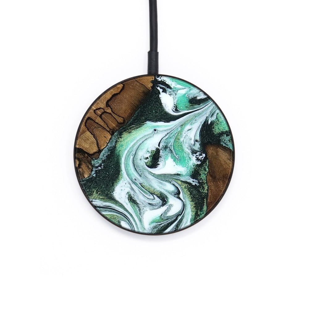 Perfectly simple, MagSafe compatible, USB-C, 1 of a kind Wireless Qi charger. CNC machined aluminum body. Every Wood+Resin inlay is unique and made at our shop in Elkhart, Indiana.