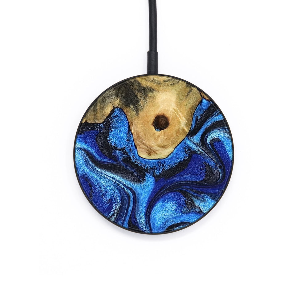 Perfectly simple, MagSafe compatible, USB-C, 1 of a kind Wireless Qi charger. CNC machined aluminum body. Every Wood+Resin inlay is unique and made at our shop in Elkhart, Indiana.