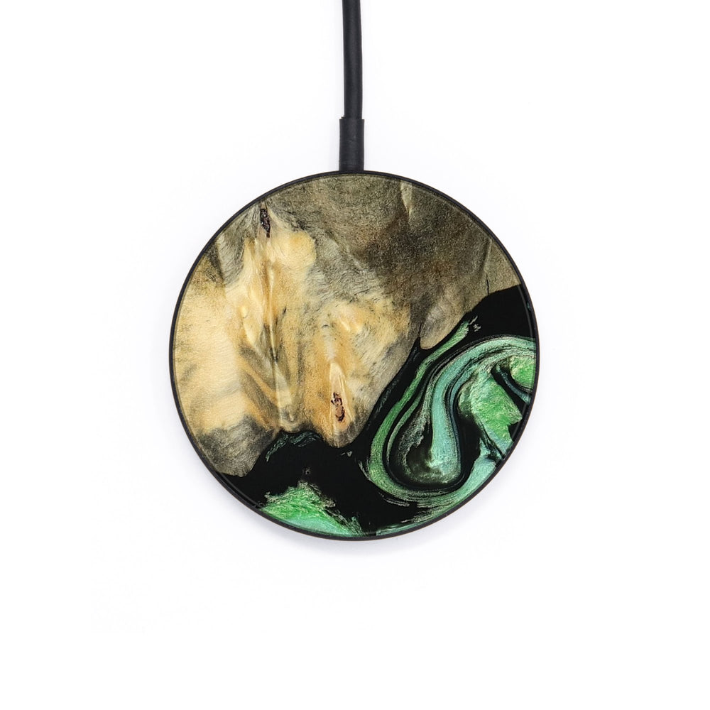 Perfectly simple, MagSafe compatible, USB-C, 1 of a kind Wireless Qi charger. CNC machined aluminum body. Every Wood+Resin inlay is unique and made at our shop in Elkhart, Indiana.