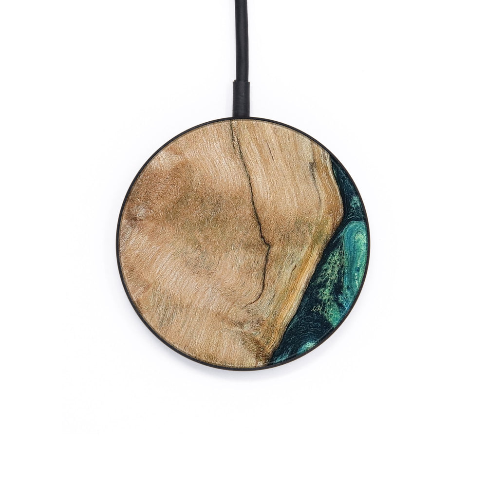 Perfectly simple, MagSafe compatible, USB-C, 1 of a kind Wireless Qi charger. CNC machined aluminum body. Every Wood+Resin inlay is unique and made at our shop in Elkhart, Indiana.