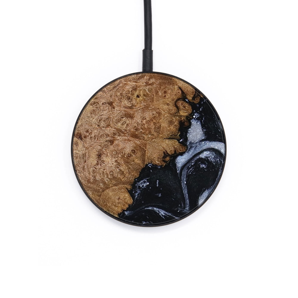 Perfectly simple, MagSafe compatible, USB-C, 1 of a kind Wireless Qi charger. CNC machined aluminum body. Every Wood+Resin inlay is unique and made at our shop in Elkhart, Indiana.