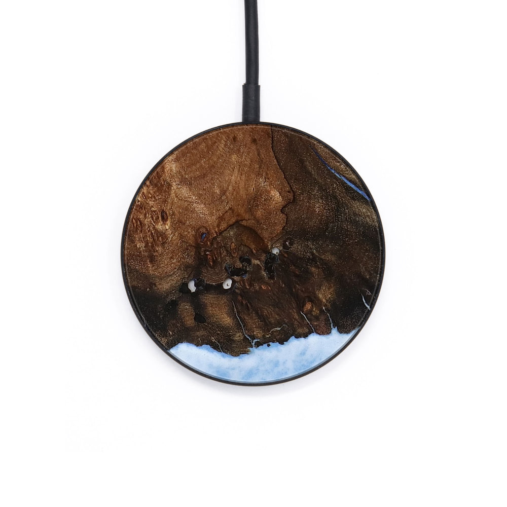 Perfectly simple, MagSafe compatible, USB-C, 1 of a kind Wireless Qi charger. CNC machined aluminum body. Every Wood+Resin inlay is unique and made at our shop in Elkhart, Indiana.