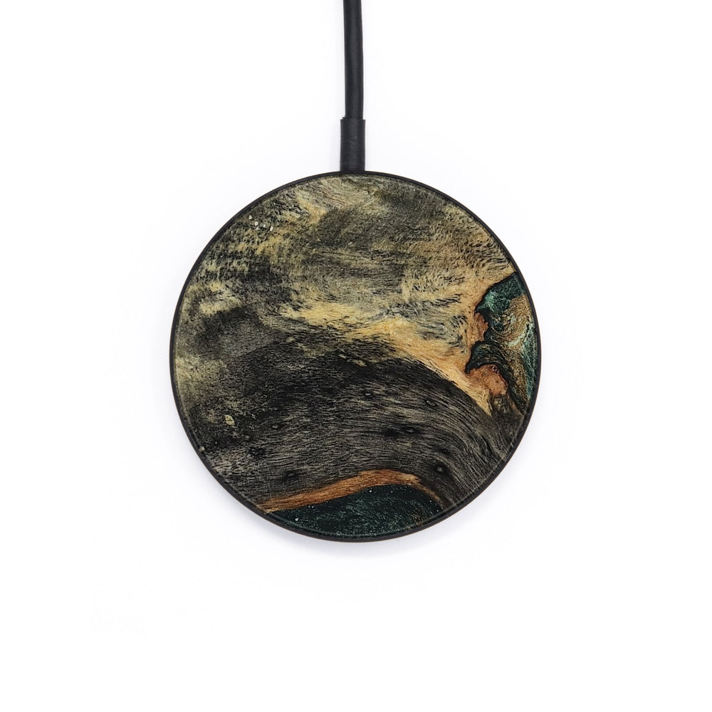 Perfectly simple, MagSafe compatible, USB-C, 1 of a kind Wireless Qi charger. CNC machined aluminum body. Every Wood+Resin inlay is unique and made at our shop in Elkhart, Indiana.