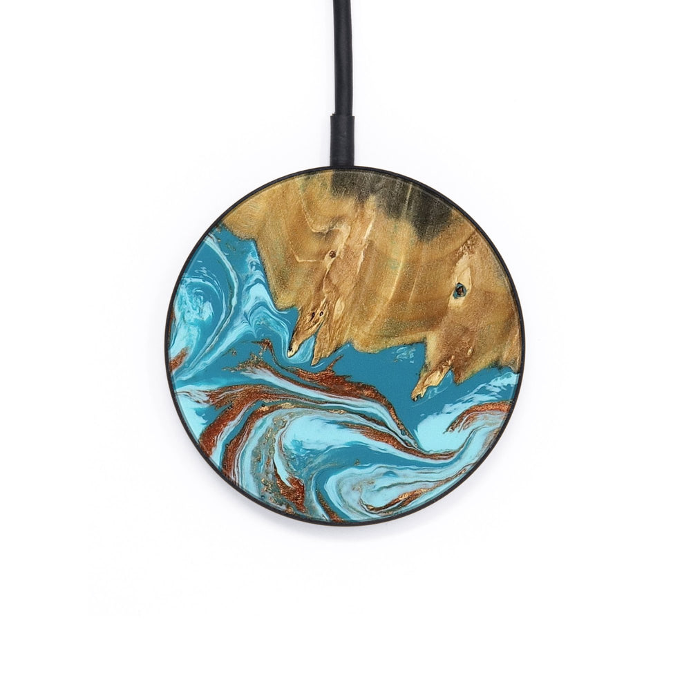 Perfectly simple, MagSafe compatible, USB-C, 1 of a kind Wireless Qi charger. CNC machined aluminum body. Every Wood+Resin inlay is unique and made at our shop in Elkhart, Indiana.