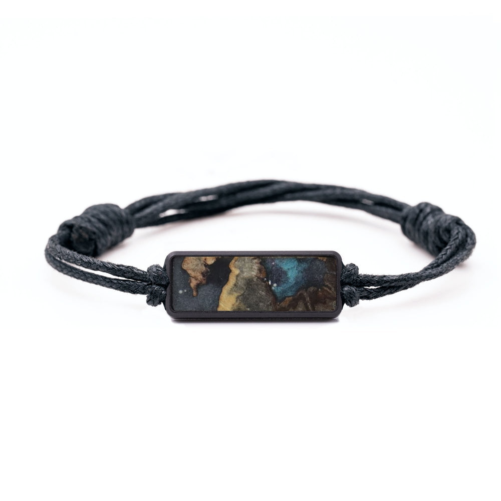 The housing is machined from a solid piece of black anodized aluminum. The cord is tied with adjustable knots to make it easy to fit to your wrist. We then inlay a small piece of our Wood+Resin material in the front of the housing. Everything fits together perfectly to make a simple, unique bracelet.