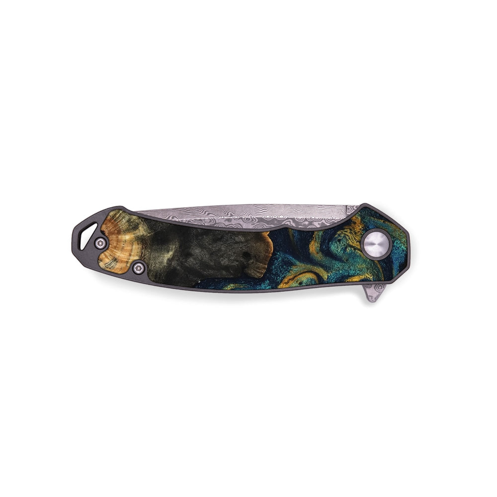 • Materials: Burl Wood, Resin, Damascus Stainless Steel