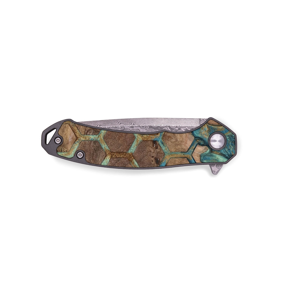 • Materials: Burl Wood, Resin, Damascus Stainless Steel