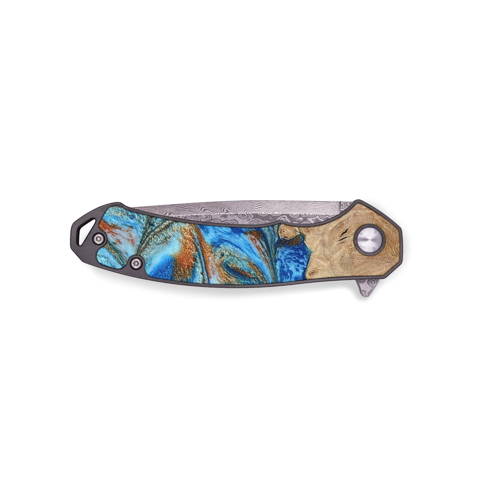 • Materials: Burl Wood, Resin, Damascus Stainless Steel