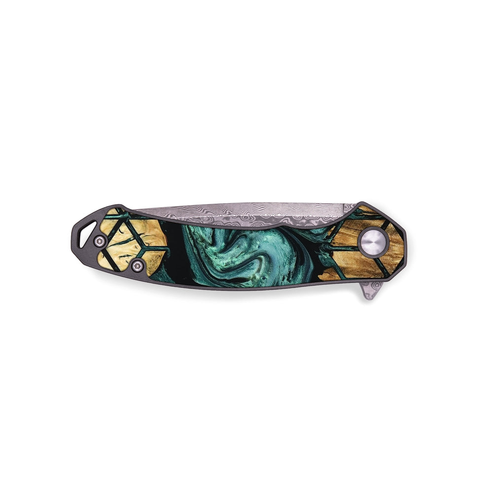 • Materials: Burl Wood, Resin, Damascus Stainless Steel