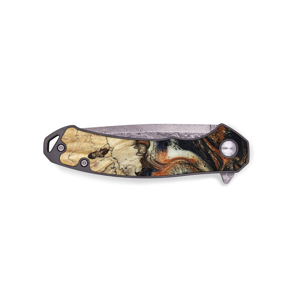 • Materials: Burl Wood, Resin, Damascus Stainless Steel