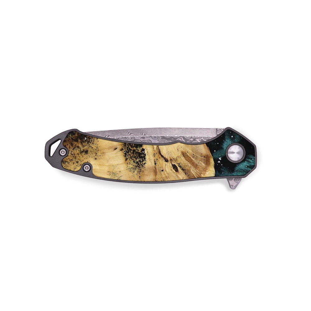 • Materials: Burl Wood, Resin, Damascus Stainless Steel