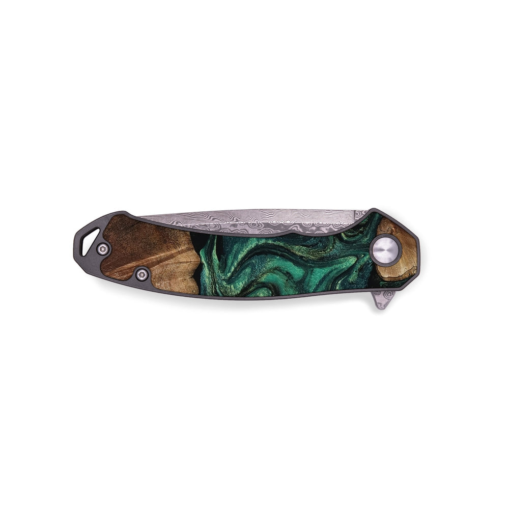 • Materials: Burl Wood, Resin, Damascus Stainless Steel