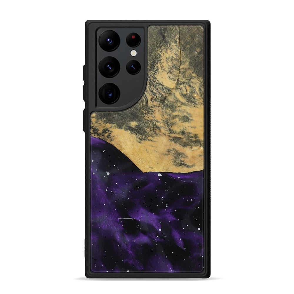 Elianna has beautiful Buckeye wood with a mix of dark and light patterns. The design flows with shades of purple and white, creating a cosmic feel.