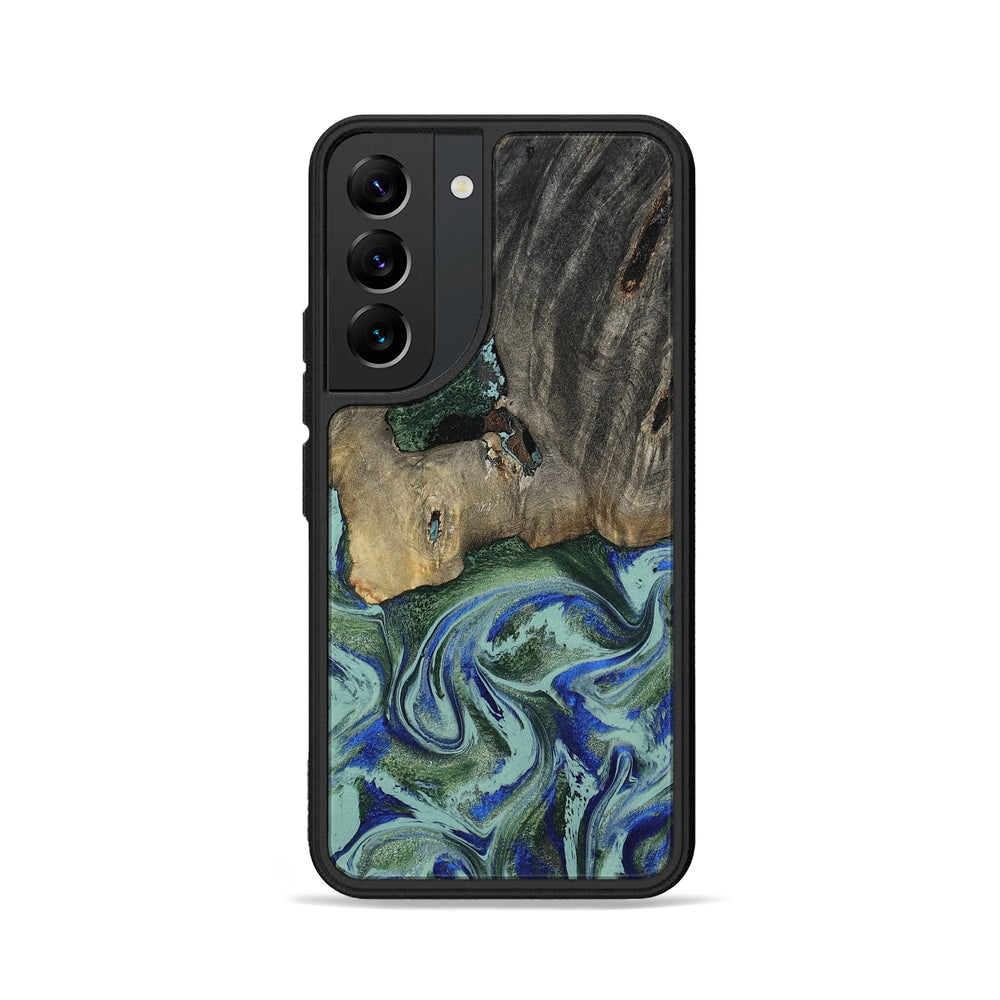Lawanda has a striking blend of dark and light wood tones, creating a natural contrast. The swirling patterns of blue and green add a vibrant touch, making it visually captivating.