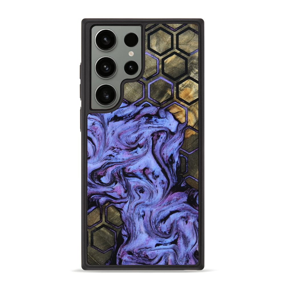 Adler has a smooth surface with swirling patterns in shades of purple and hints of gold. The artwork features a striking honeycomb pattern that adds a unique texture and depth.