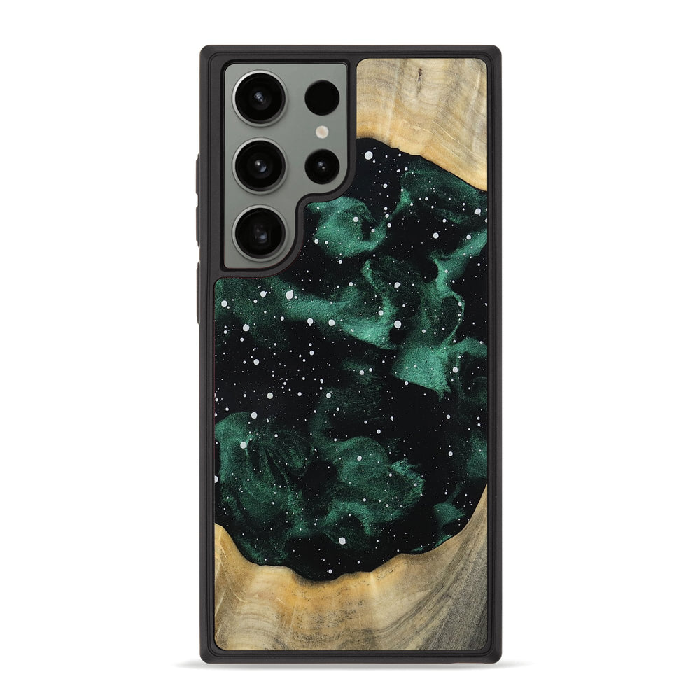 Brendon has a rich, dark green center with swirling patterns that resemble a night sky. The surrounding Buckeye wood features a smooth, natural edge, enhancing its warm, earthy tones.