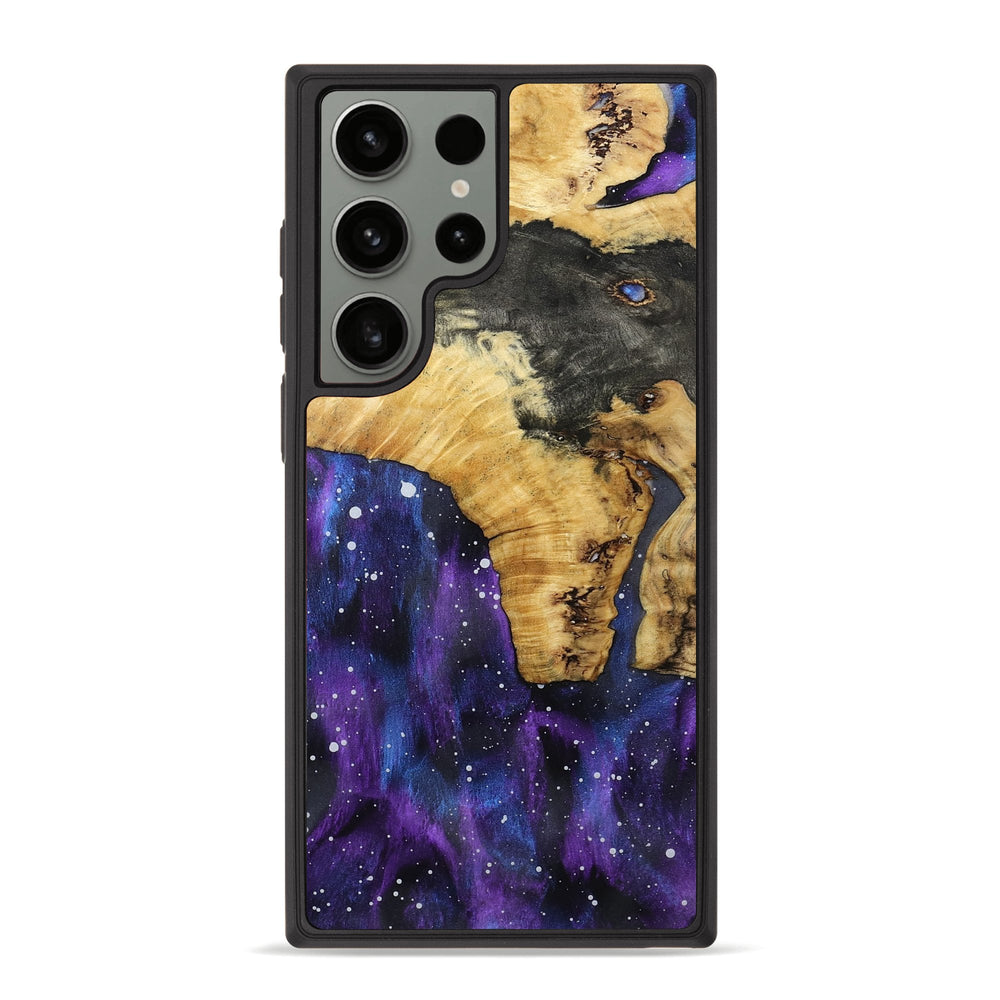 Cara is a striking piece of Buckeye wood with swirling patterns and unique markings. Its warm tones contrast beautifully with a deep, cosmic background of purple and black.