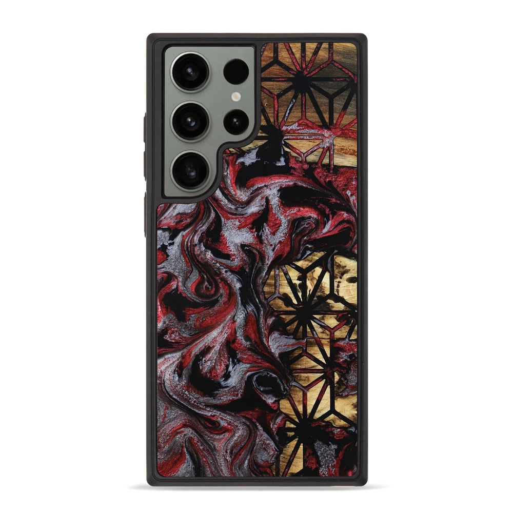 Coby is a vibrant piece of Buckeye wood with rich reds and blacks swirling together. It features a striking geometric pattern, creating a unique blend of natural beauty and design.