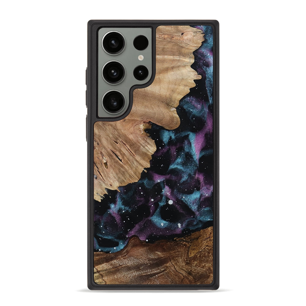 Russ has beautiful Maple wood with smooth curves and warm tones. The design features a cosmic pattern of blues and purples that adds a striking contrast.