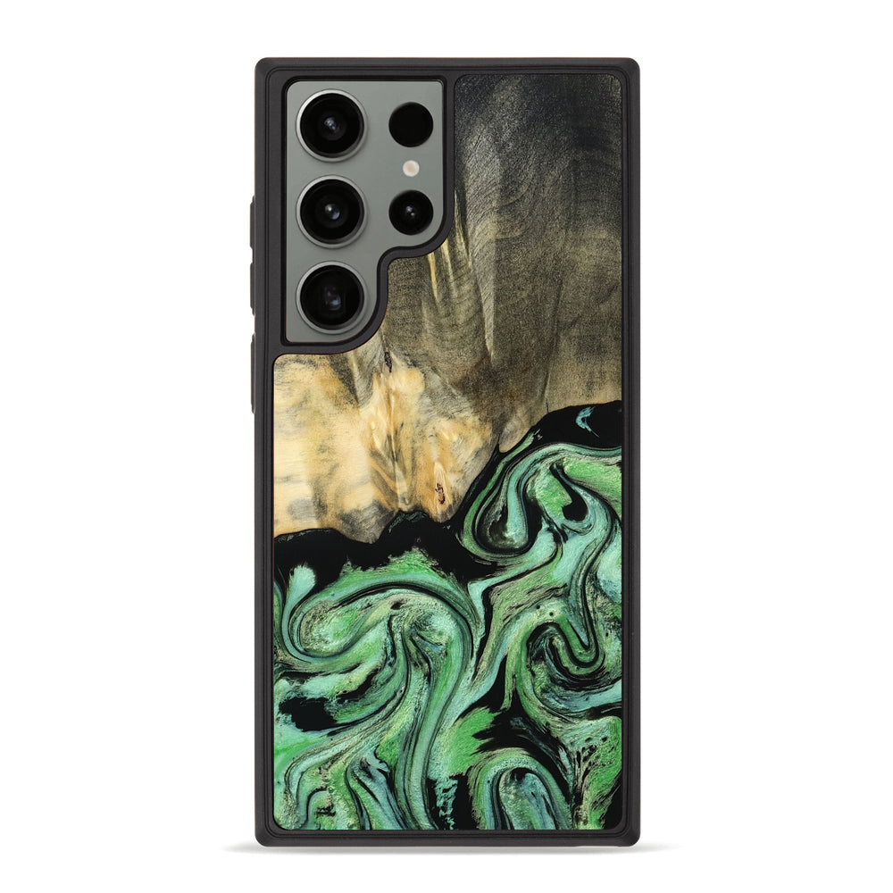 Tamie has a beautiful mix of dark and light wood, showcasing its natural grain. The swirling patterns in vibrant green create a unique and eye-catching contrast.