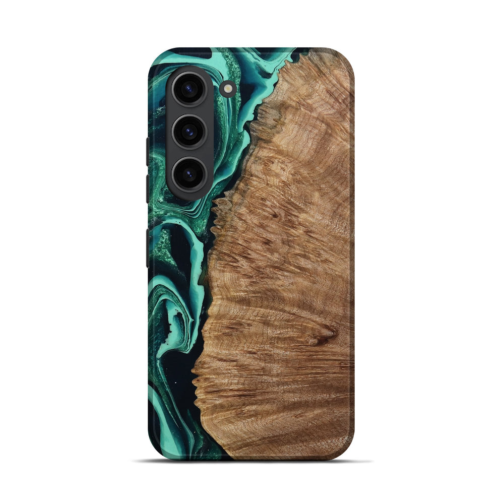 Our Live Edge cases are made from an amazing combination of stabilized wood burl and colored resin. Our stabilization process hardens the wood to protect against cracks and breaks. We do every step of the process at our shop in Northern Indiana. Perfectly fits the Galaxy S23.
