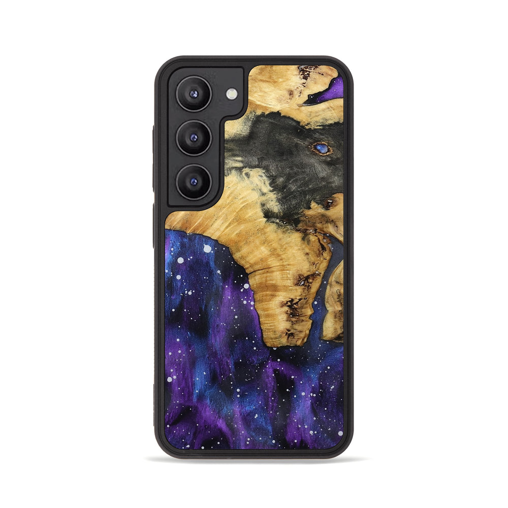 Cara is a striking piece of Buckeye wood with swirling patterns and unique markings. Its warm tones contrast beautifully with a deep, cosmic background of purple and black.