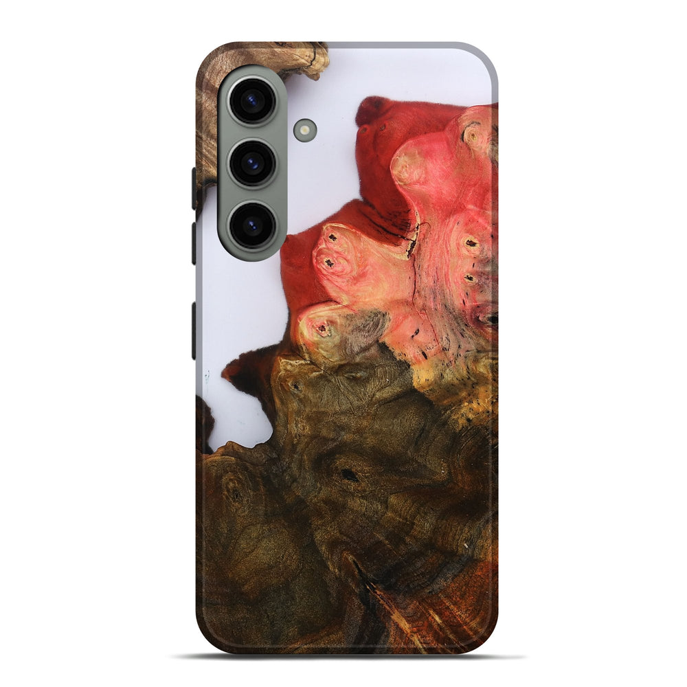 Our Live Edge cases are made from an amazing combination of stabilized wood burl and colored resin. Our stabilization process hardens the wood to protect against cracks and breaks. We do every step of the process at our shop in Northern Indiana. Perfectly fits the Galaxy S24 Plus.