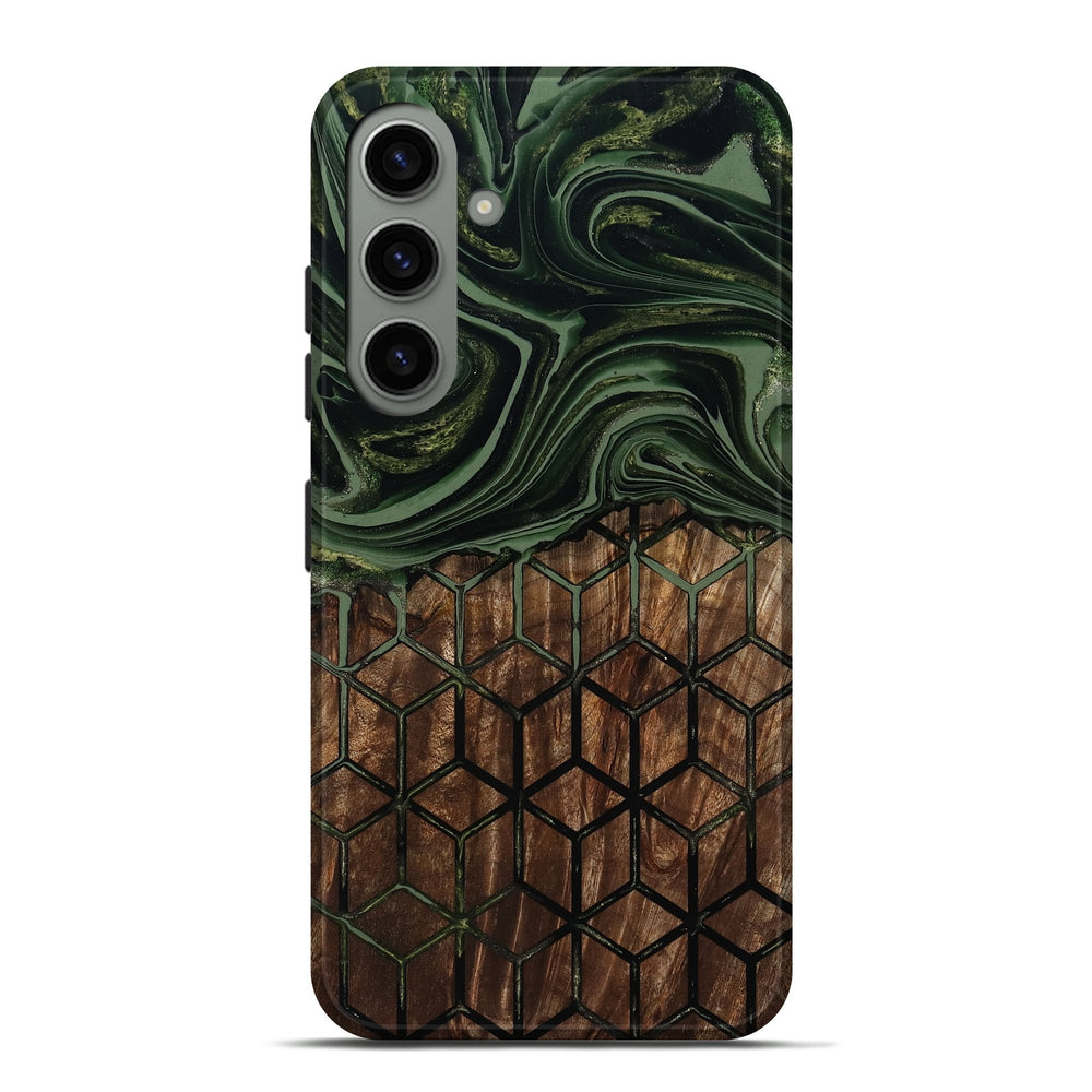 Our Live Edge cases are made from an amazing combination of stabilized wood burl and colored resin. Our stabilization process hardens the wood to protect against cracks and breaks. We do every step of the process at our shop in Northern Indiana. Perfectly fits the Galaxy S24 Plus.