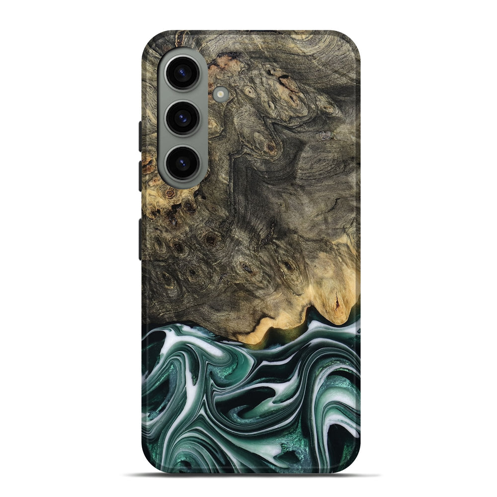 Our Live Edge cases are made from an amazing combination of stabilized wood burl and colored resin. Our stabilization process hardens the wood to protect against cracks and breaks. We do every step of the process at our shop in Northern Indiana. Perfectly fits the Galaxy S24 Plus.