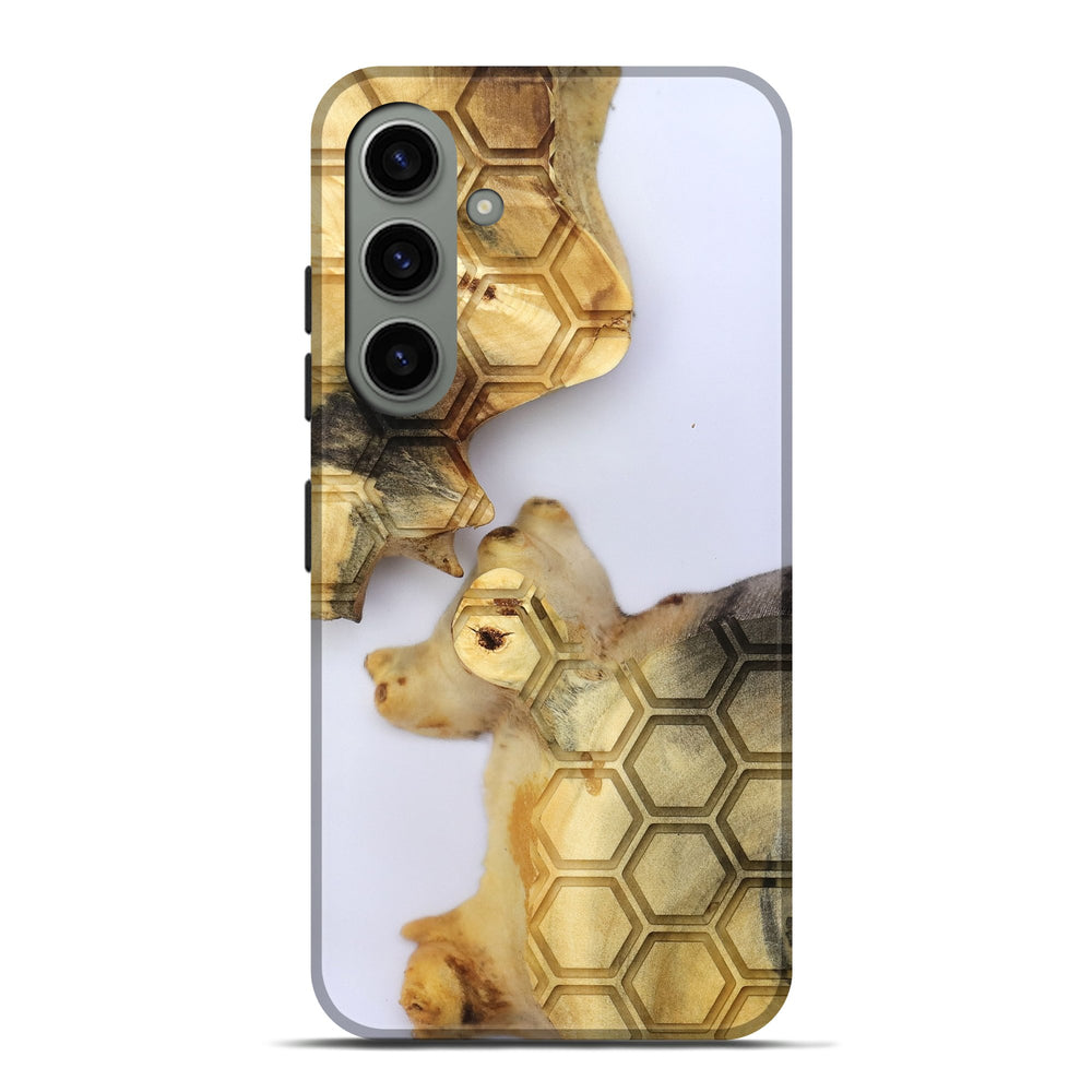 Our Live Edge cases are made from an amazing combination of stabilized wood burl and colored resin. Our stabilization process hardens the wood to protect against cracks and breaks. We do every step of the process at our shop in Northern Indiana. Perfectly fits the Galaxy S24 Plus.
