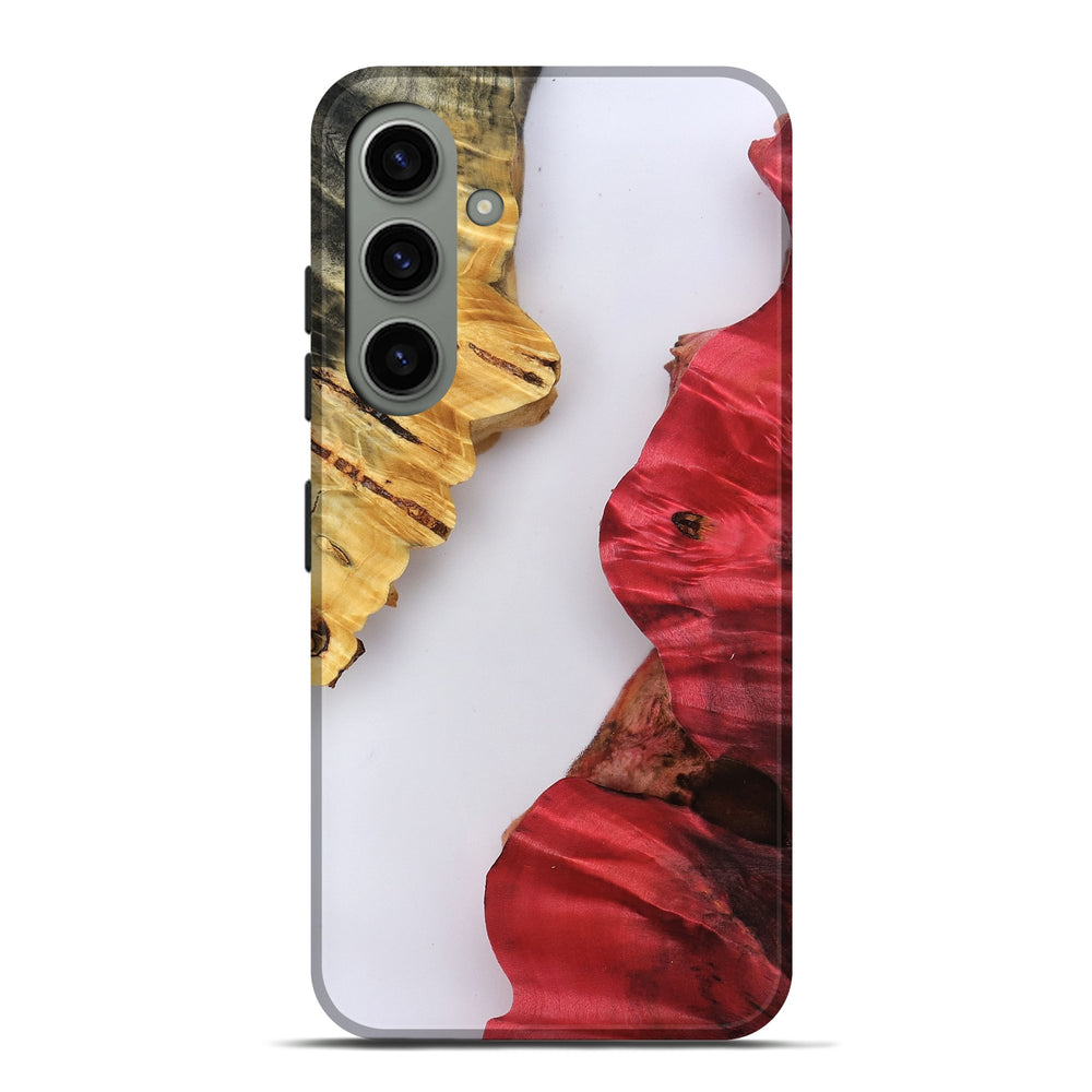 Our Live Edge cases are made from an amazing combination of stabilized wood burl and colored resin. Our stabilization process hardens the wood to protect against cracks and breaks. We do every step of the process at our shop in Northern Indiana. Perfectly fits the Galaxy S24 Plus.