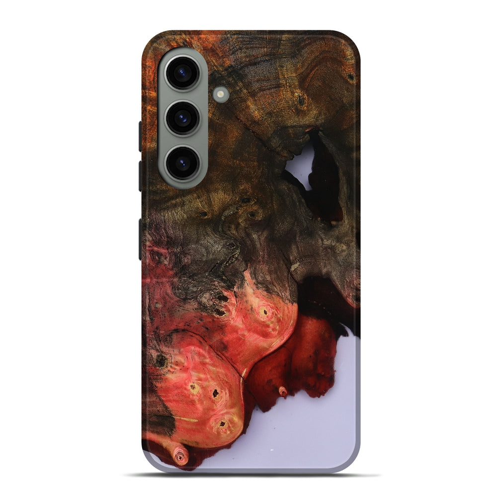 Our Live Edge cases are made from an amazing combination of stabilized wood burl and colored resin. Our stabilization process hardens the wood to protect against cracks and breaks. We do every step of the process at our shop in Northern Indiana. Perfectly fits the Galaxy S24 Plus.