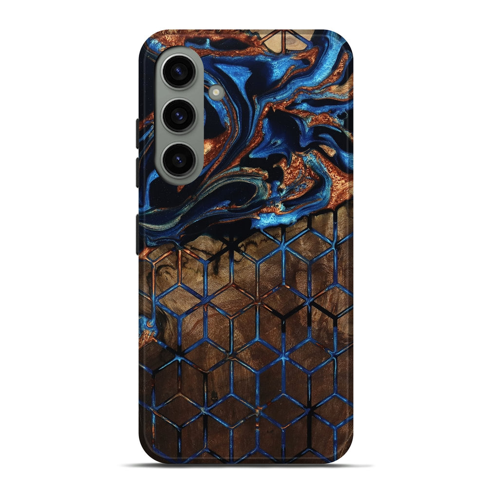 Our Live Edge cases are made from an amazing combination of stabilized wood burl and colored resin. Our stabilization process hardens the wood to protect against cracks and breaks. We do every step of the process at our shop in Northern Indiana. Perfectly fits the Galaxy S24 Plus.