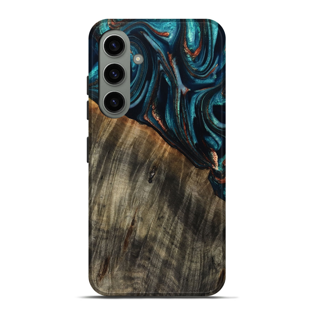 Our Live Edge cases are made from an amazing combination of stabilized wood burl and colored resin. Our stabilization process hardens the wood to protect against cracks and breaks. We do every step of the process at our shop in Northern Indiana. Perfectly fits the Galaxy S24 Plus.