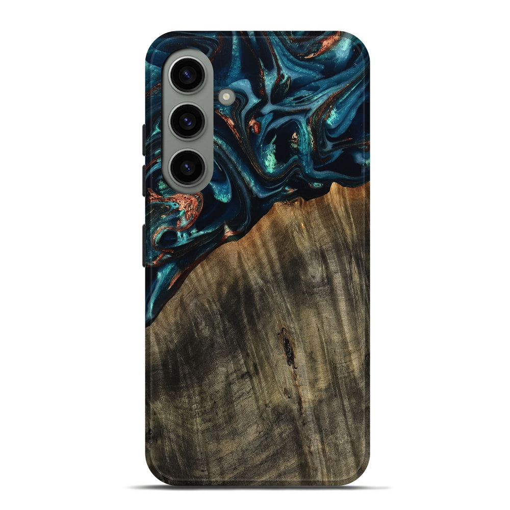 Our Live Edge cases are made from an amazing combination of stabilized wood burl and colored resin. Our stabilization process hardens the wood to protect against cracks and breaks. We do every step of the process at our shop in Northern Indiana. Perfectly fits the Galaxy S24 Plus.