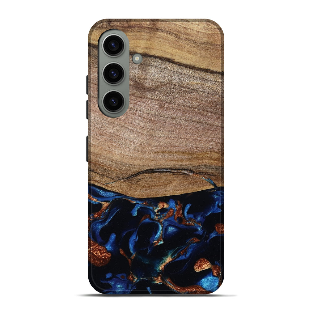 Our Live Edge cases are made from an amazing combination of stabilized wood burl and colored resin. Our stabilization process hardens the wood to protect against cracks and breaks. We do every step of the process at our shop in Northern Indiana. Perfectly fits the Galaxy S24 Plus.