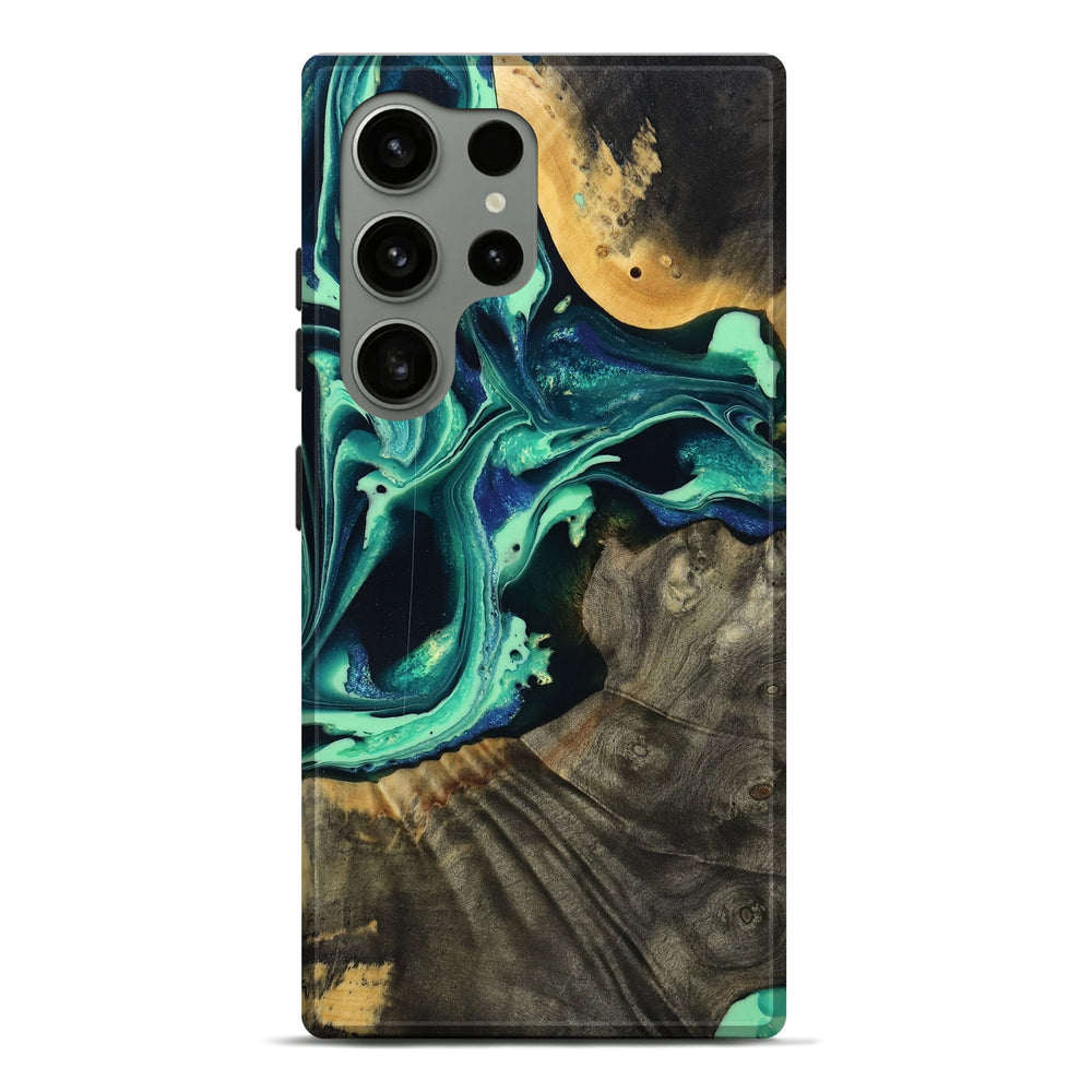 Our Live Edge cases are made from an amazing combination of stabilized wood burl and colored resin. Our stabilization process hardens the wood to protect against cracks and breaks. We do every step of the process at our shop in Northern Indiana. Perfectly fits the Galaxy S24 Ultra.