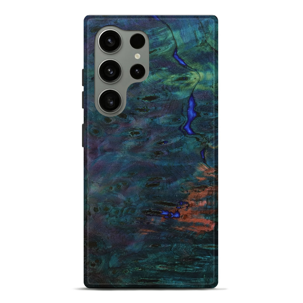 Our Live Edge cases are made from an amazing combination of stabilized wood burl and colored resin. Our stabilization process hardens the wood to protect against cracks and breaks. We do every step of the process at our shop in Northern Indiana. Perfectly fits the Galaxy S24 Ultra.