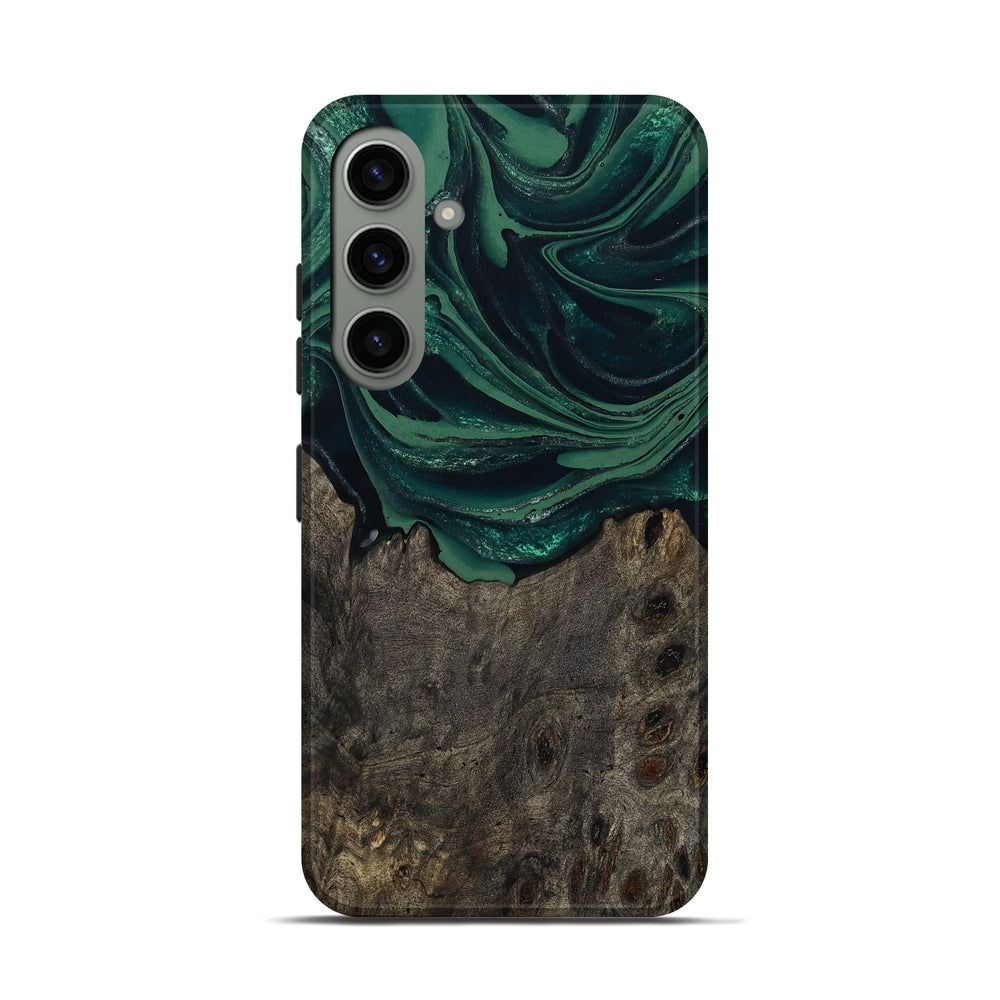 Our Live Edge cases are made from an amazing combination of stabilized wood burl and colored resin. Our stabilization process hardens the wood to protect against cracks and breaks. We do every step of the process at our shop in Northern Indiana. Perfectly fits the Galaxy S24.