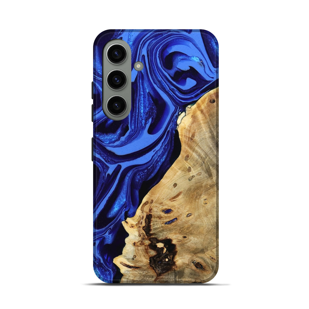 Our Live Edge cases are made from an amazing combination of stabilized wood burl and colored resin. Our stabilization process hardens the wood to protect against cracks and breaks. We do every step of the process at our shop in Northern Indiana. Perfectly fits the Galaxy S24.