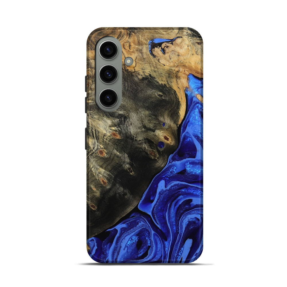 Our Live Edge cases are made from an amazing combination of stabilized wood burl and colored resin. Our stabilization process hardens the wood to protect against cracks and breaks. We do every step of the process at our shop in Northern Indiana. Perfectly fits the Galaxy S24.