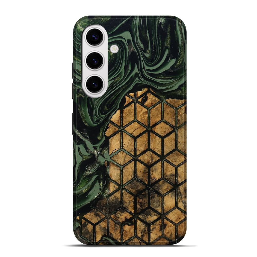 Our Live Edge cases are made from an amazing combination of stabilized wood burl and colored resin. Our stabilization process hardens the wood to protect against cracks and breaks. We do every step of the process at our shop in Northern Indiana. Perfectly fits the Galaxy S25 Plus.