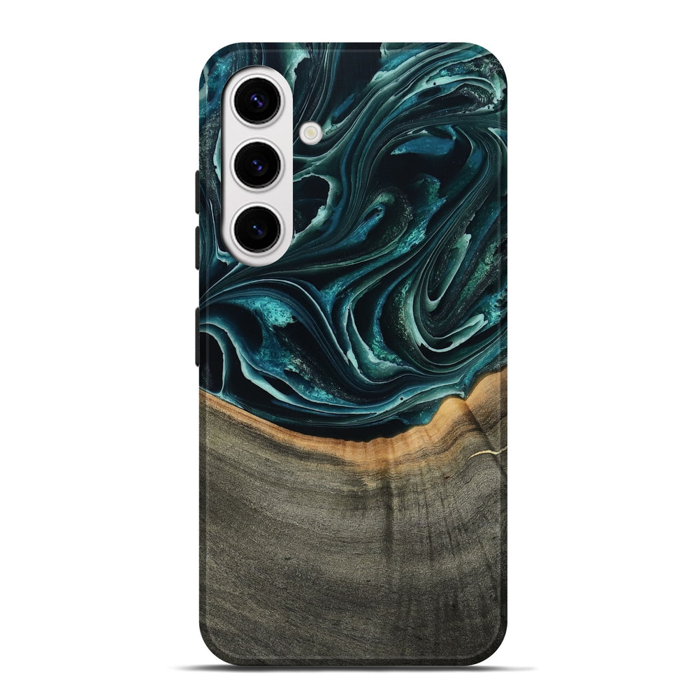 Our Live Edge cases are made from an amazing combination of stabilized wood burl and colored resin. Our stabilization process hardens the wood to protect against cracks and breaks. We do every step of the process at our shop in Northern Indiana. Perfectly fits the Galaxy S25 Plus.