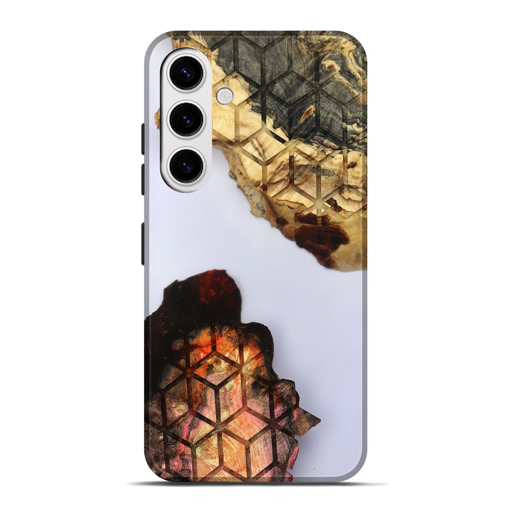 Our Live Edge cases are made from an amazing combination of stabilized wood burl and colored resin. Our stabilization process hardens the wood to protect against cracks and breaks. We do every step of the process at our shop in Northern Indiana. Perfectly fits the Galaxy S25 Plus.