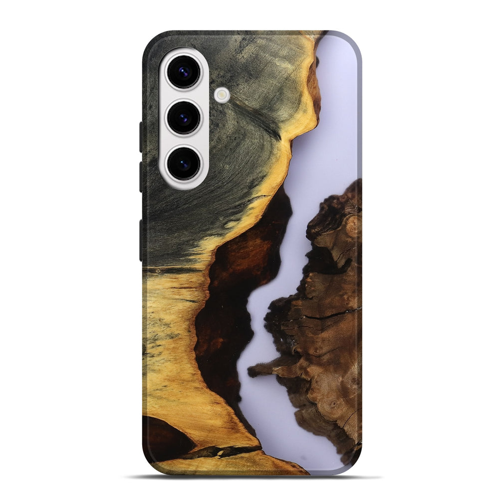 Our Live Edge cases are made from an amazing combination of stabilized wood burl and colored resin. Our stabilization process hardens the wood to protect against cracks and breaks. We do every step of the process at our shop in Northern Indiana. Perfectly fits the Galaxy S25 Plus.