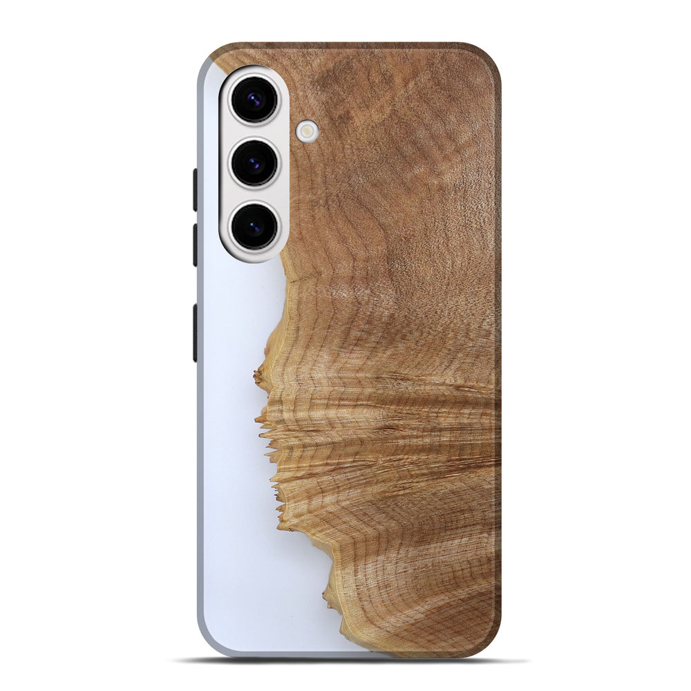 Our Live Edge cases are made from an amazing combination of stabilized wood burl and colored resin. Our stabilization process hardens the wood to protect against cracks and breaks. We do every step of the process at our shop in Northern Indiana. Perfectly fits the Galaxy S25 Plus.