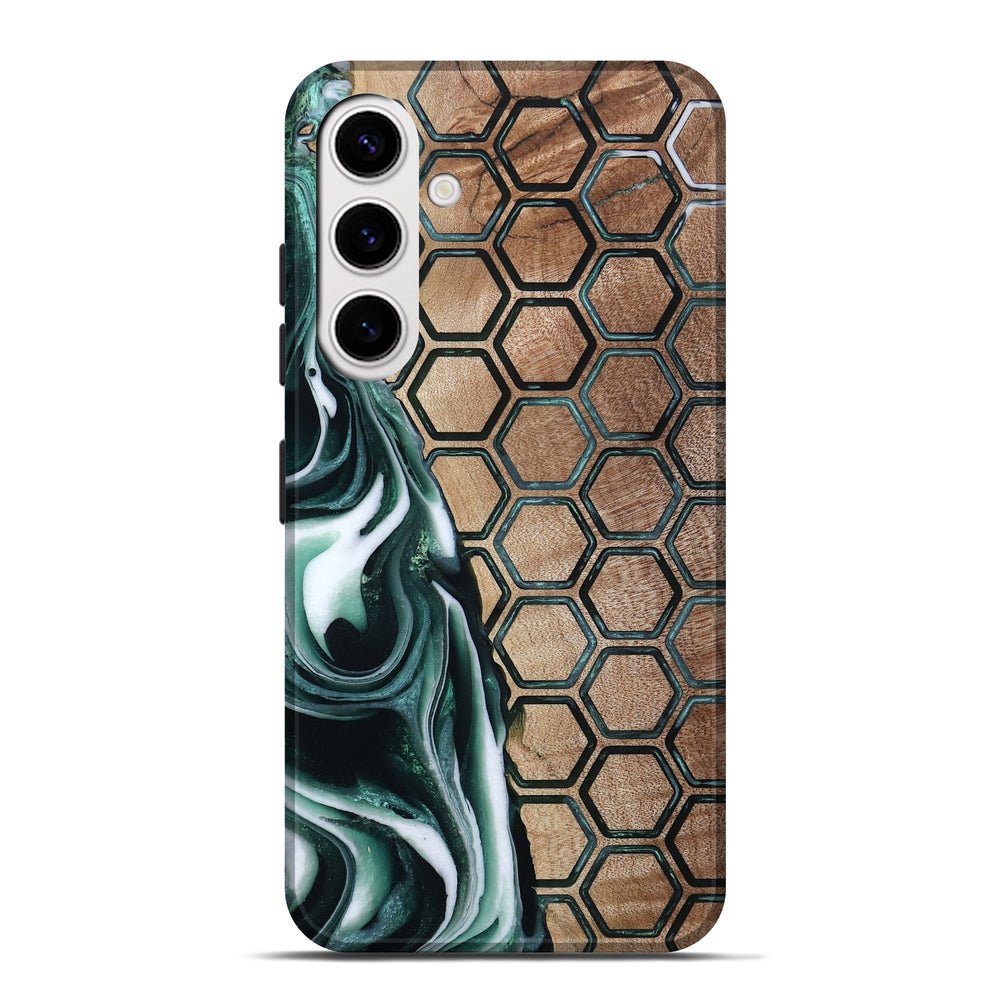 Our Live Edge cases are made from an amazing combination of stabilized wood burl and colored resin. Our stabilization process hardens the wood to protect against cracks and breaks. We do every step of the process at our shop in Northern Indiana. Perfectly fits the Galaxy S25 Plus.