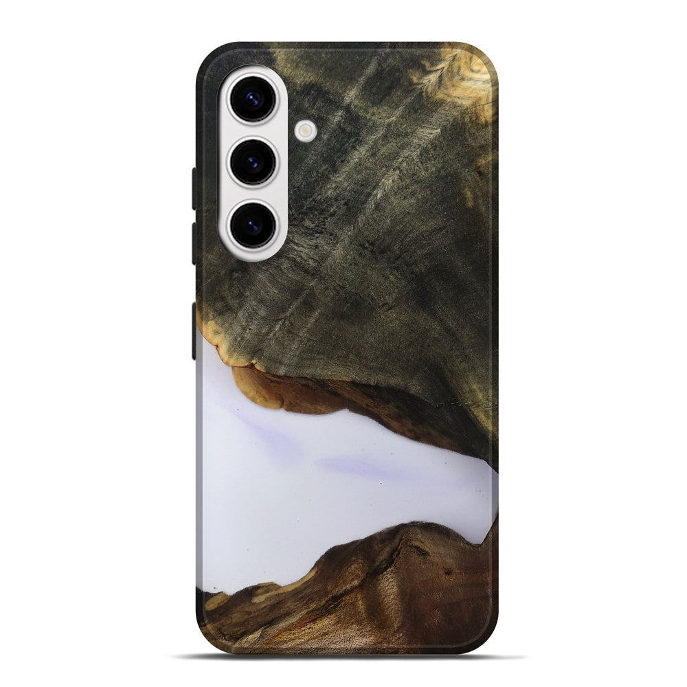 Our Live Edge cases are made from an amazing combination of stabilized wood burl and colored resin. Our stabilization process hardens the wood to protect against cracks and breaks. We do every step of the process at our shop in Northern Indiana. Perfectly fits the Galaxy S25 Plus.